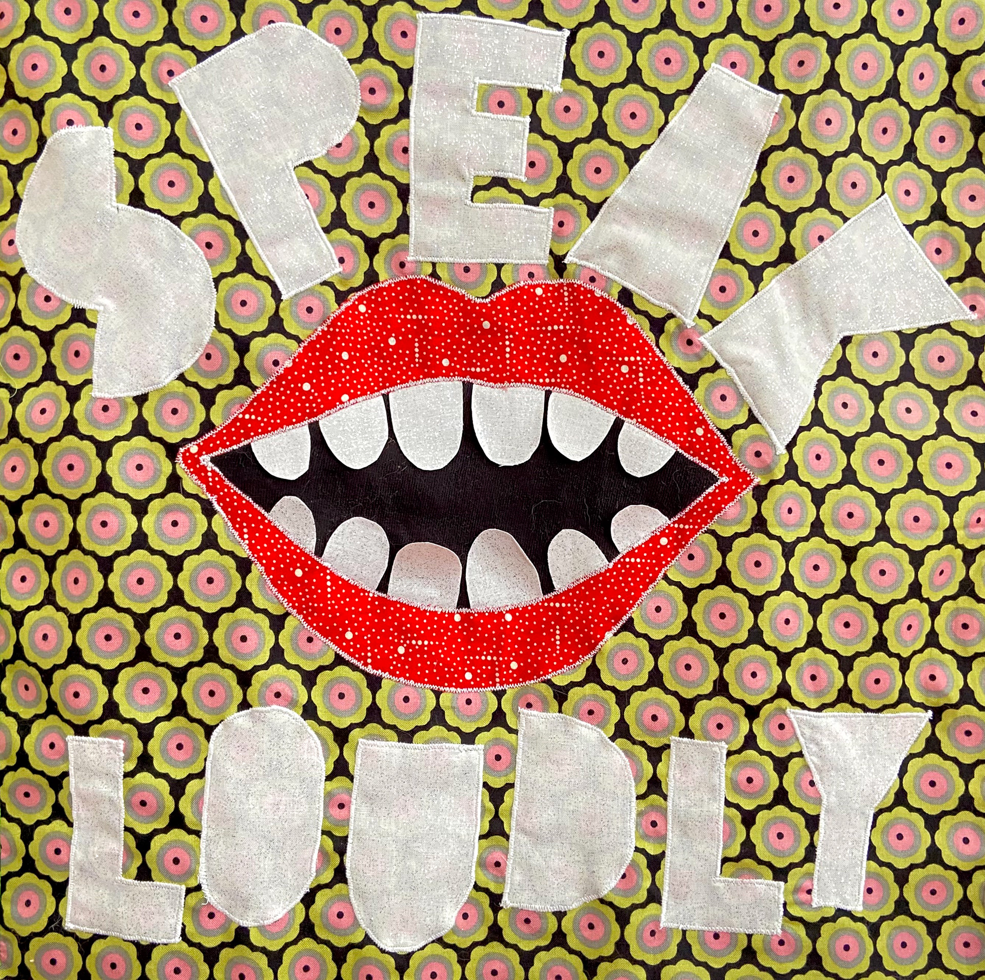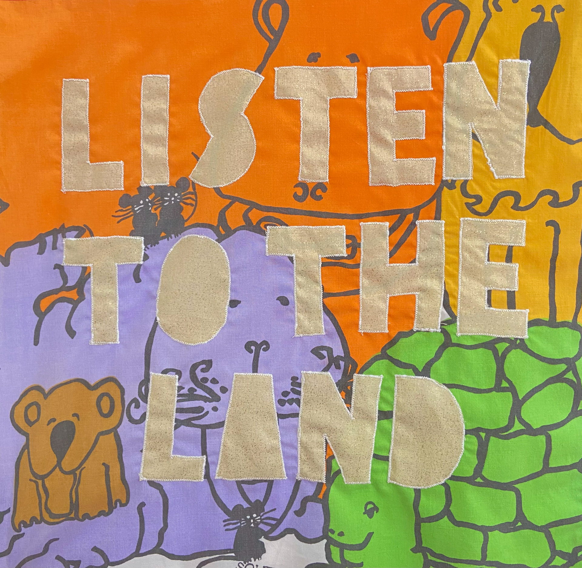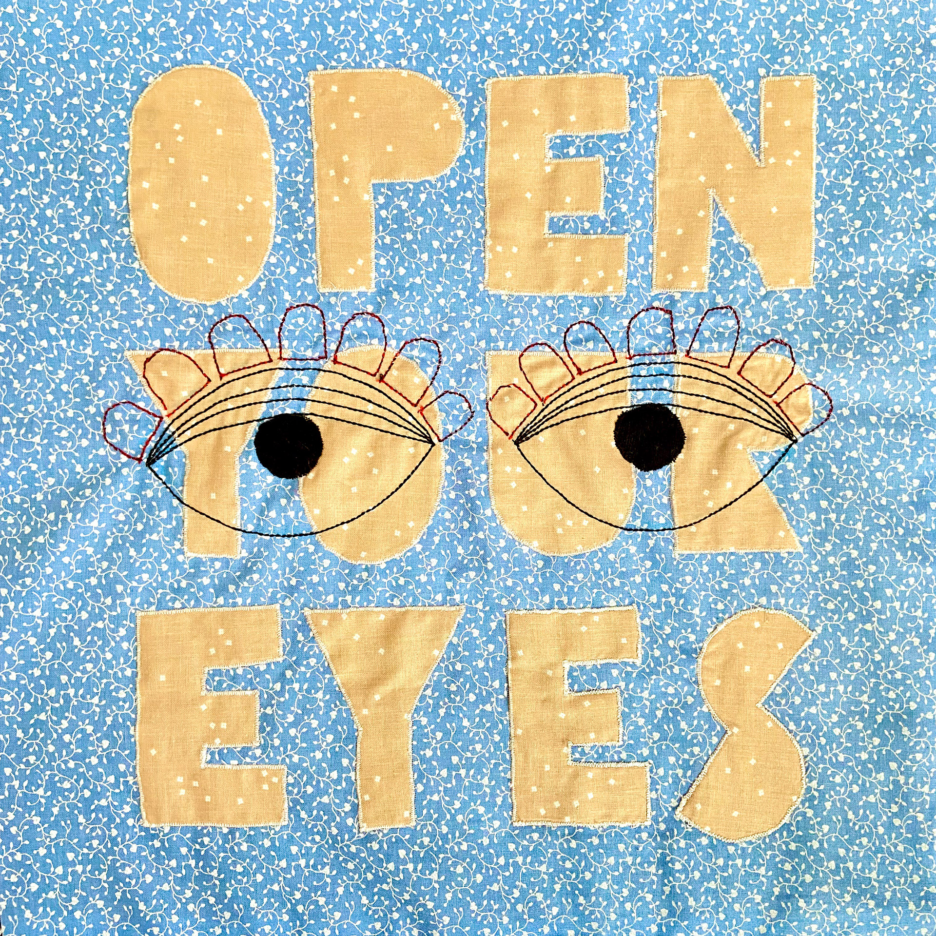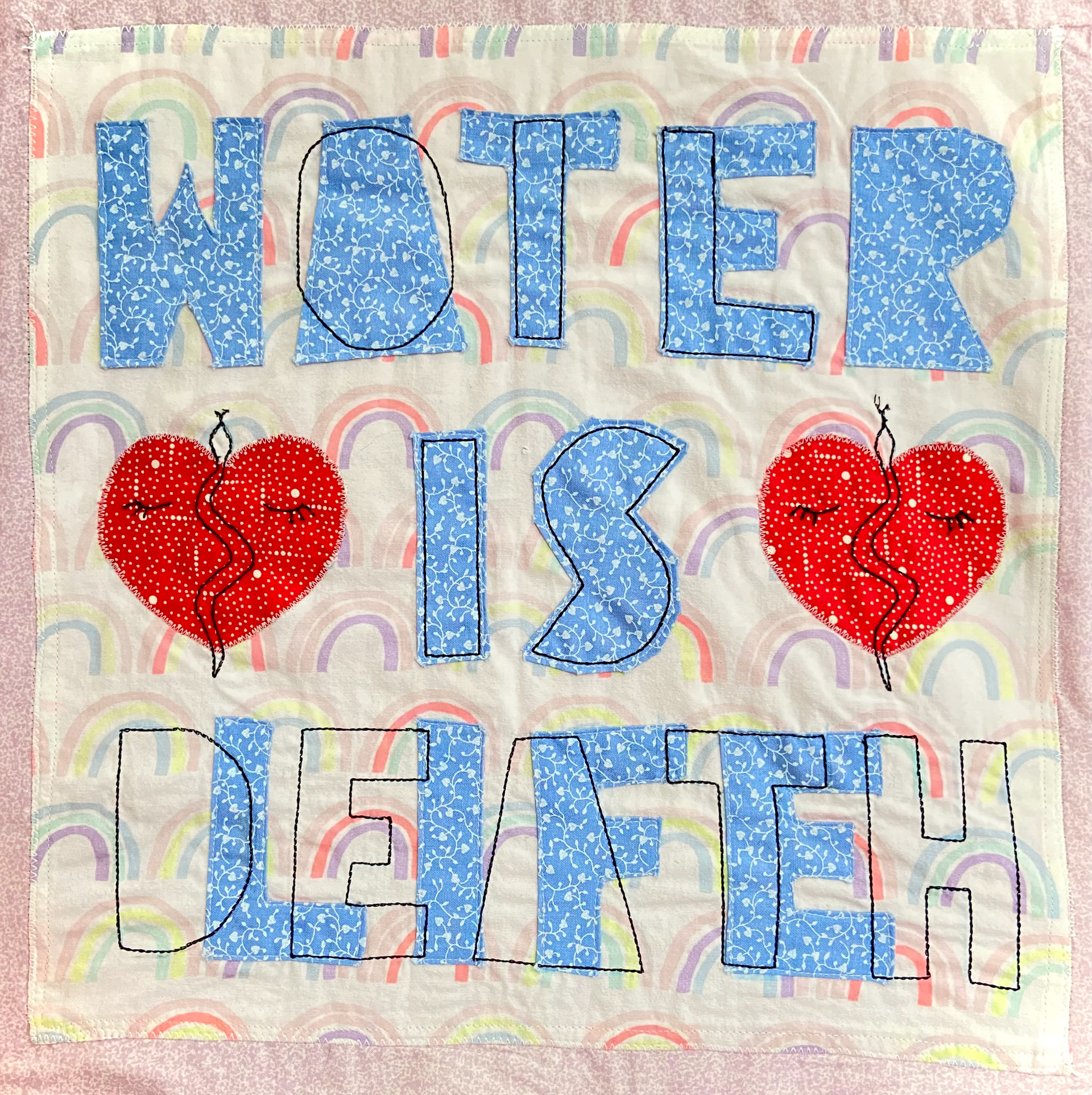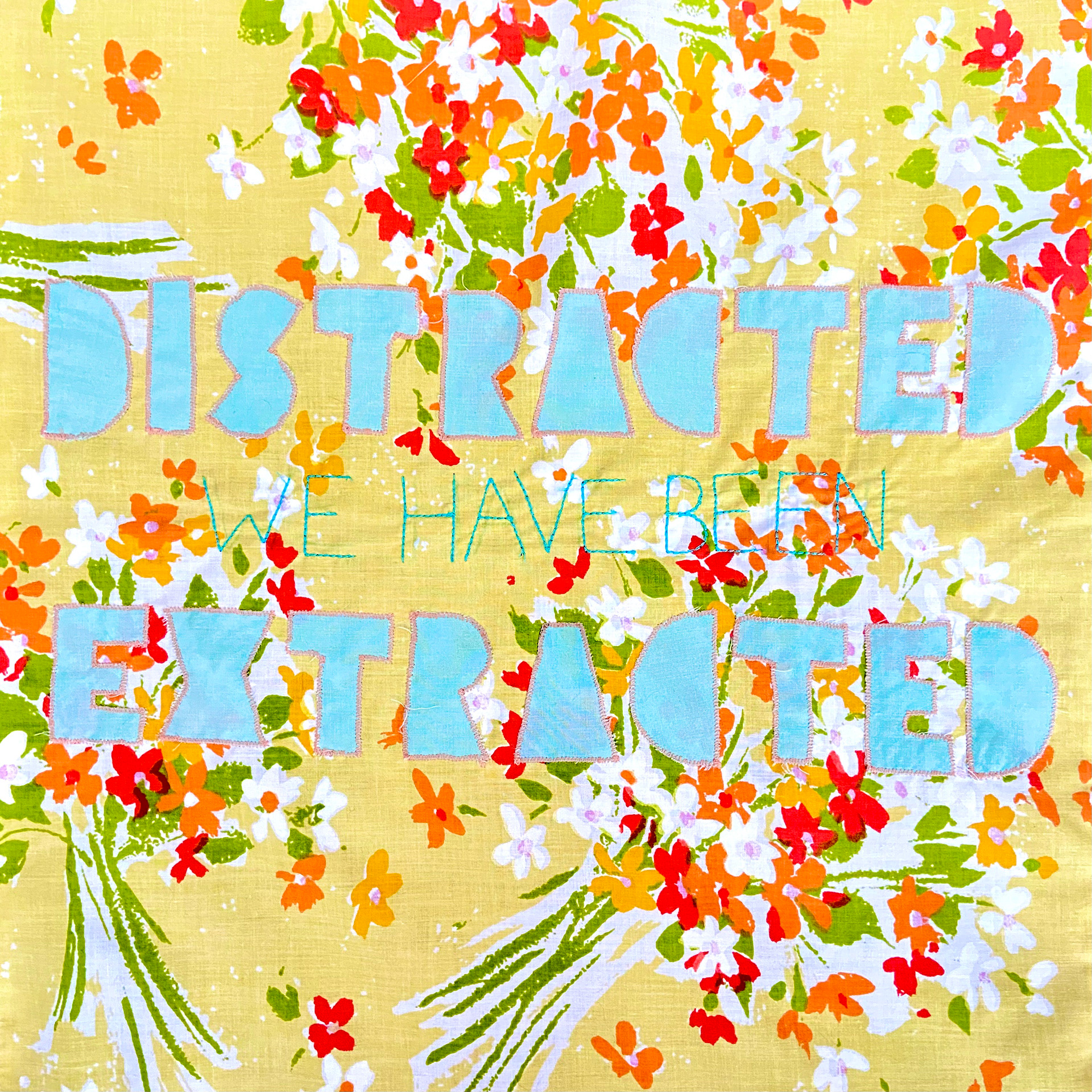 Cotton and poly-blend fabric remnants, polyester thread 45 in. x 45 in. Created in 2021 for an Eco Art Matters course at Laney College and featured in the 2023 exhibition 'Support Systems' at Side Bitch Gallery in L.A.